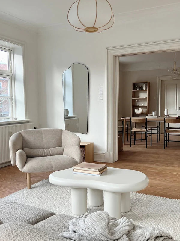 Me encanta la forma suavemente curvada. El espejo le da a mi habitación una atmósfera tranquila y elegante. ¡Totalmente recomendable!